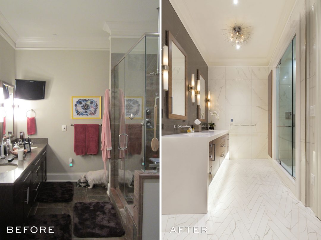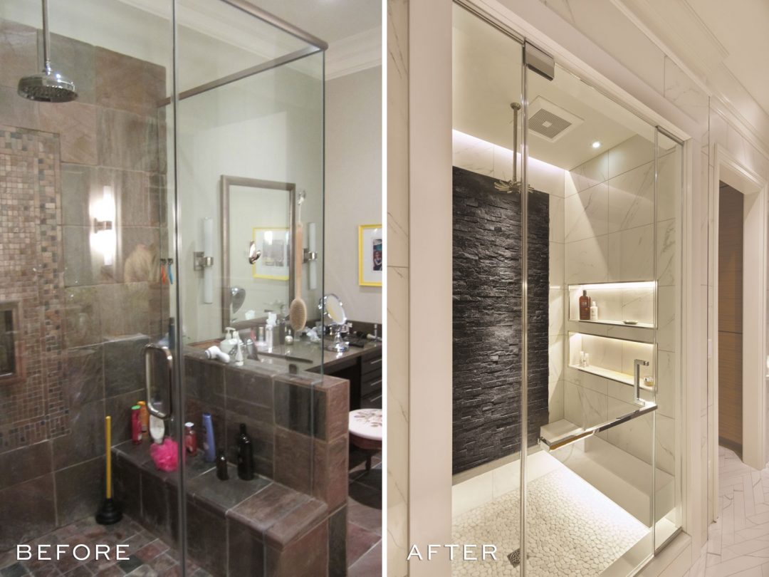 Remodel – full tear out and new design of custom modern bath by Stratton Design Group. Includes all Space Planning, Ceiling & Lighting Design, Finishes, Furniture, Accessories & all other misc. details, materials & features.